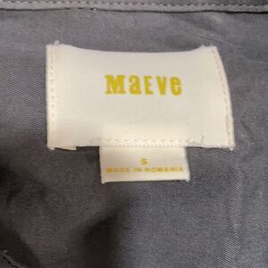 Anthropologie Maeve button up top Gently pre owned condition, no flaws Solid dark grey Long sleeves Buttons up front Collared neckline Tie detail on bottom hem Slightly longer in back than in front Hidden button style 100% tencel Size small-oversized fit. See measurements in the pictures