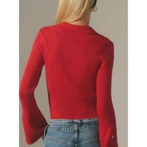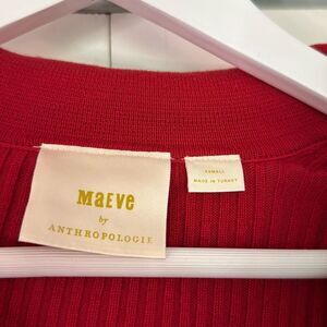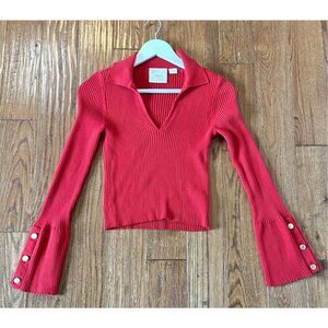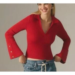 Anthropologie Maeve red ribbed collared cropped blouse xs