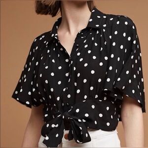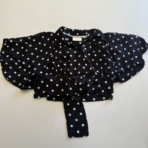 Anthropologie-Maeve-Canna-Polka Dot-Crop Top-Black & White-Flowy Sleeves-Size 2