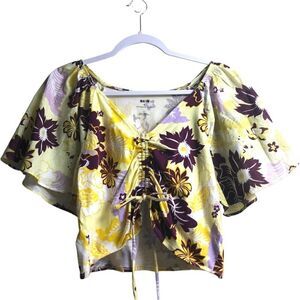 Anthropologie Maeve Cinched Flutter-Sleeve Peasant Floral Top