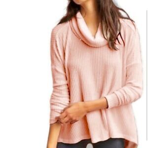Anthropologie Maeve Ribbed Pink Turtleneck Top