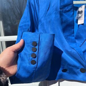 Gorgeous anthro mare mare 2 piece skirt suit. Never been worn, with tags attached. Cropped blazer and mini skirt. Blazer is double breasted. Side zip on skirt. Beautiful royal blue color!