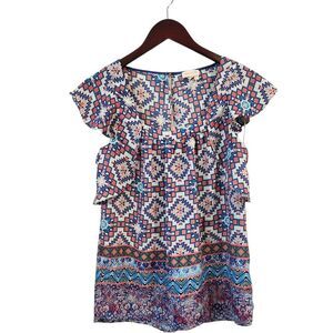 Anthropologie Meadow Rue Top Women's Small Pink Multi Color Flutter Tank Blouse