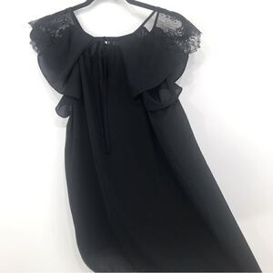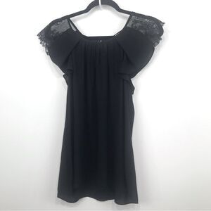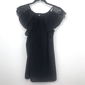 Anthropologie Meadow Rue Black Lace Ruffle open Sleeve Blouse