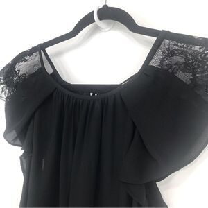 Anthropologie Meadow Rue Black Lace Ruffle Open Sleeve Blouse