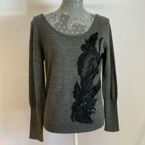 Anthropologie Med PETITE Angel of the North Charcoal & Black Embroidered Sweater