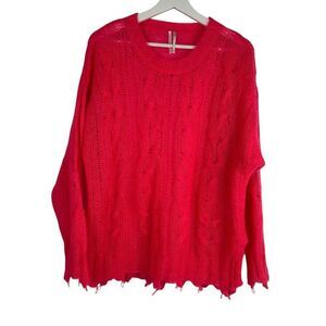 Anthropologie Medium Lightweight Cable Wool Neon Pink Sweater