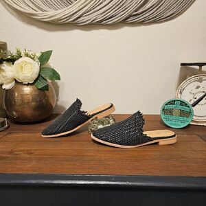 Anthropologie-Mi iM Vivi Frayed Edge Boho Woven Braided Mule Sz 6.5