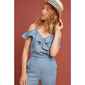 Anthropologie- Michael Stars Ruffled Open-Shoulder Jumpsuit