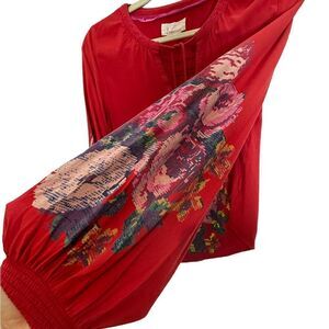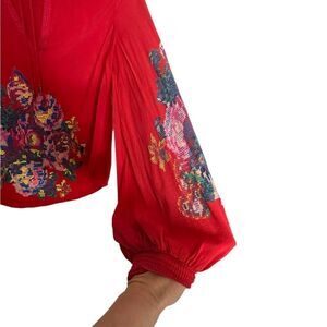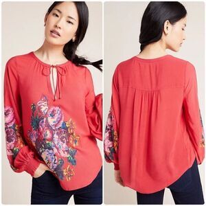 Anthropologie Monica Red Floral Embroidered Top| Size S