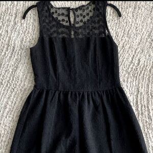 Adorable Black Lace Insets, tweed like textured fabric dress, knee length. Cute button closure in back. Good condition
