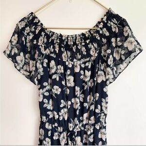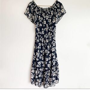 Anthropologie Moon River Floral Blue Off The Shoulder Dress