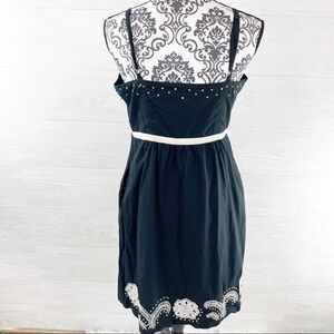 Anthropologie Moulinette Soeurs Atwitter dress size 10. Stunning, intricately embroidered dress from this sought after Anthropologie brand . Adjustable straps with fitted bodice. Shallow V neckline and gross grain ribbon waistline . A line skirt and side zip closure. Fully lined with black 100% cotton fabric with white lace embroidery. No holes or stains. Absolutely stunning!