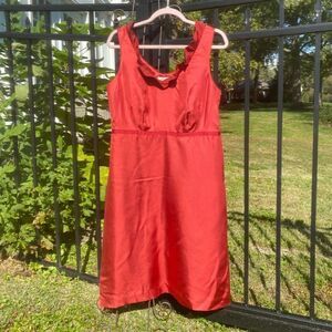 Stunning moulinette souers red silk dress. 100% silk. Side zip. Beautiful ruffle neckline.