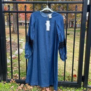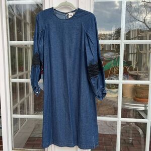 Gorgeous anthro ne quittez pas denim open sky embroidered dress. Never been worn, with tags attached. 100% cotton. Made in India. Pullover style. Length 40”.