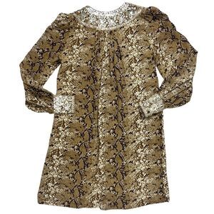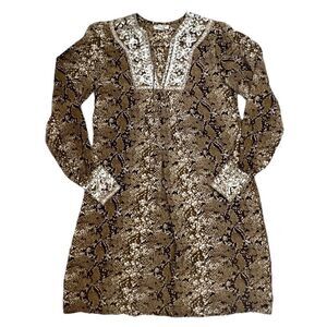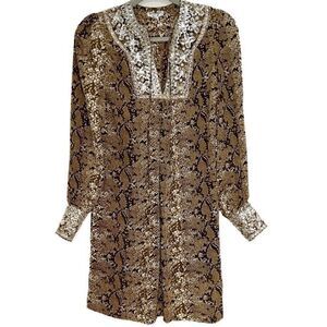 Anthropologie Nieves Lavi Snake Print 100% Silk Dress with Beading Detail