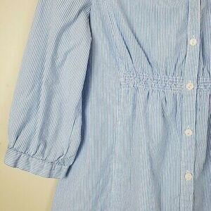 Cute cotton button shirt with gathering under bust, long shirt tail hem, sleeves take can be rolled up. Back waist has button detail. Good condition
