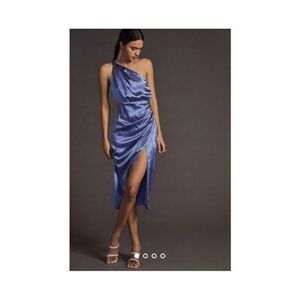 Anthropologie One-Shoulder Silk Midi Dress Blue NEW US 00