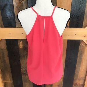 Anthropologie Paper Crane spaghetti strap top, size S. 100% polyester, looser fit, with keyhole in back,pull over your head style. Really pretty coral color. Approximate measurements are pit to pit flat 18”, length from shoulder approximately 24”.