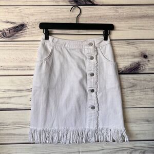 Anthropologie Pilcro White Denim Button Down Fringe Skirt