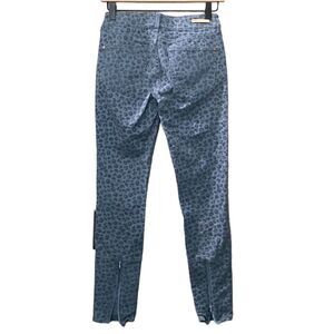 The Stet slim ankle 5 pocket fit, Anthropologie Pilcro Women's skinny Leopard Animal Print Stet Zipper Ankle Pants Zippers on ankles. Blue with a blue leopard print in velvet.