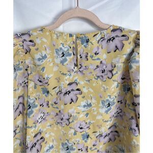 Anthropologie Pleione Blouse || beautiful floral pattern on a yellow background || darted sleeves || size xs, fits oversized || new condition || pretty cuffs at wrists