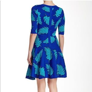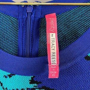 Gorgeous blue & teal 'raji leaves' print fit & flare mini dress from Anthropologie brand, Plenty by Tracy Reese in a size XS. Featuring elbow length sleeves, crew neckline, thick knit bodycon like material, and hidden back zipper; fit & flare design; unless. Excellent condition with exception of some snags here and there (please see all photos & video above); any questions please ask! ✨