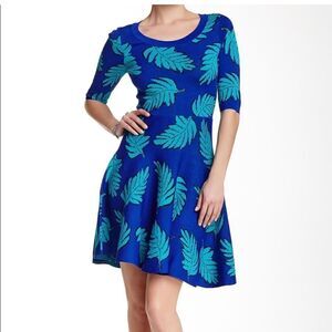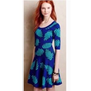 Anthropologie Plenty by Tracy Reese Lisa Dress in Raji Leaves Blue Motif | XS