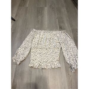 Anthropologie Polka Dot Off The Shoulder Cropped Blouse Size Small