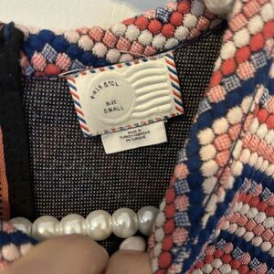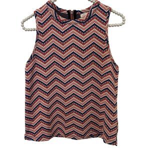 Anthropologie Postage Stamp Tank Top Womens Small Chevron Textured Knit Boho Sleeveless Blue Red