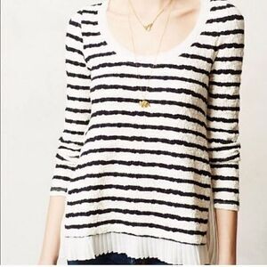 Anthropologie Postage Walkwrite Longsleeve Tee Pleated Inset Navy White Large P