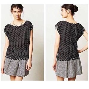 Anthropologie Postmark Black White Short Sleeve Textured Weave Top Sz S