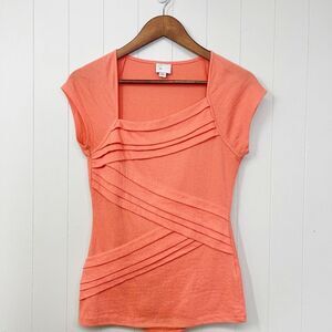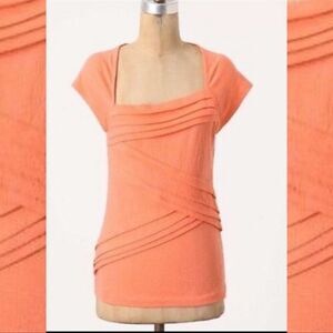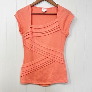 Anthropologie Postmark Pleated Cap Sleeve Top Coral Size Extra Small