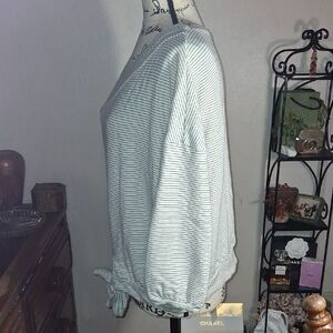 Anthropologie Postmark Striped Off-Shoulder Top with Tie Front Xlarge