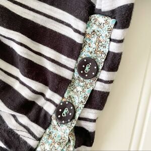 This Long Sleeve Striped Shirt from Postmark has a boatneck, floral patterned details around collar and side panels with polka dot button detailing.