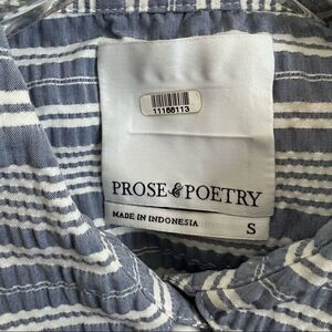 Anthropologie Prose & Poetry Striped Mini Dress, Size Small- Blue and white striped cotton (100% Cotton). Hourglass. Sleeveless. Shirt collar neckline. Exposed front button down placket. Partially lined. 34.5" from shoulder to hemline. Dry clean only. I recommend dry cleaning before wearing.