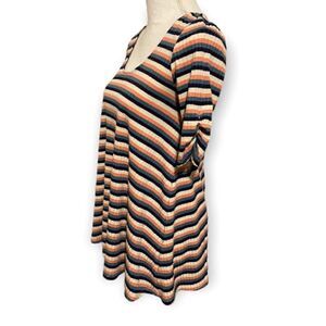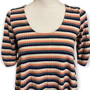 Flowy striped tunic with multi color stripes and ribbed pattern. Size XS
