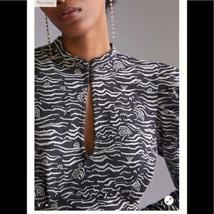Anthropologie Puff-Sleeved Jacquard Midi Dress Petite Large