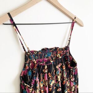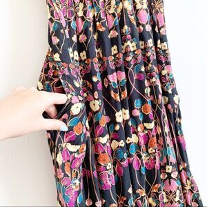 Anthropologie Quilted Floral Maxi Dress Black Size XS Flowy Bohemian Square Neck