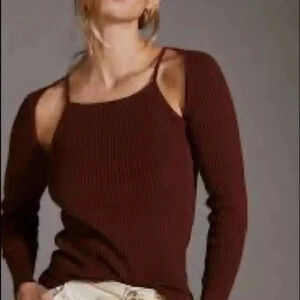 Anthropologie Ribbed Cut Out Sweater Top 1x