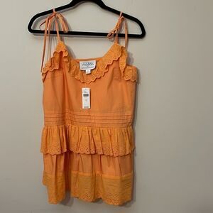 With dainty eyelet ruffles, this tanks makes a lovely match for high rise utility shorts and slides