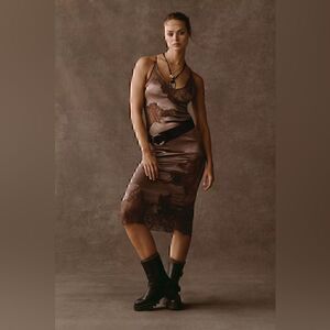 Anthropologie Satin Lace Midi Pajama Dress Size M New With Tags