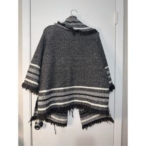 Anthropologie Saturday Sunday Grey Striped Fringe Cardigan Shawl - ONE SIZE