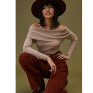 Anthropologie Shimmer Off the Shoulder Cashmere Sweater NWT
