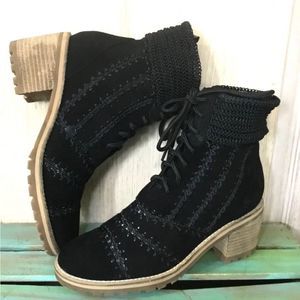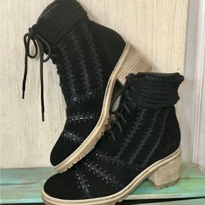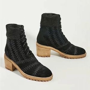 Anthropologie Silent D Bestie Bootie Macramé Trim Lace Up Black