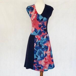 Anthropologie Silk Infused Leifsdottir Faux Wrap Color Block Floral Knit Dress M
