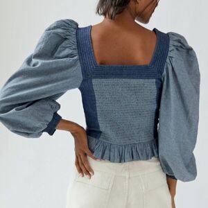 Anthropologie Smocked Puff-Sleeve Blouse| Size XSP