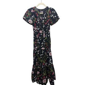 Anthropologie The Somerset Maxi Dress in Black Floral Motif Sz. XXS