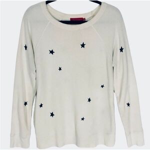 Super cute soft Raglan sweater round neck gathered sleeves loose fit super cute, distressed star look on the front and back and pullover style