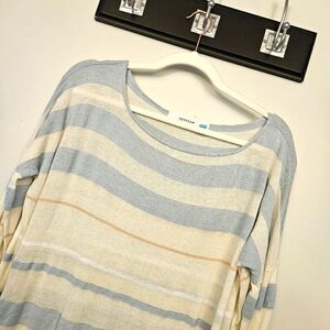 Cotton/linen blend lightweight sweater with ribbed cuffs and hem, great for spring and summer. Oversized fit.